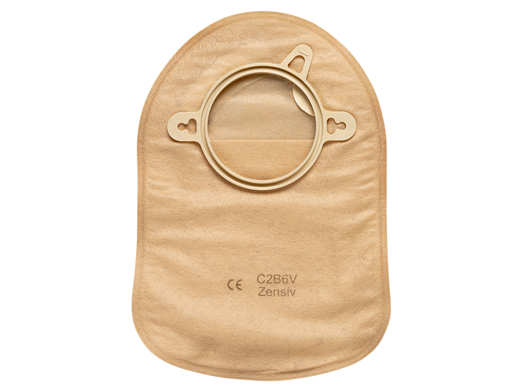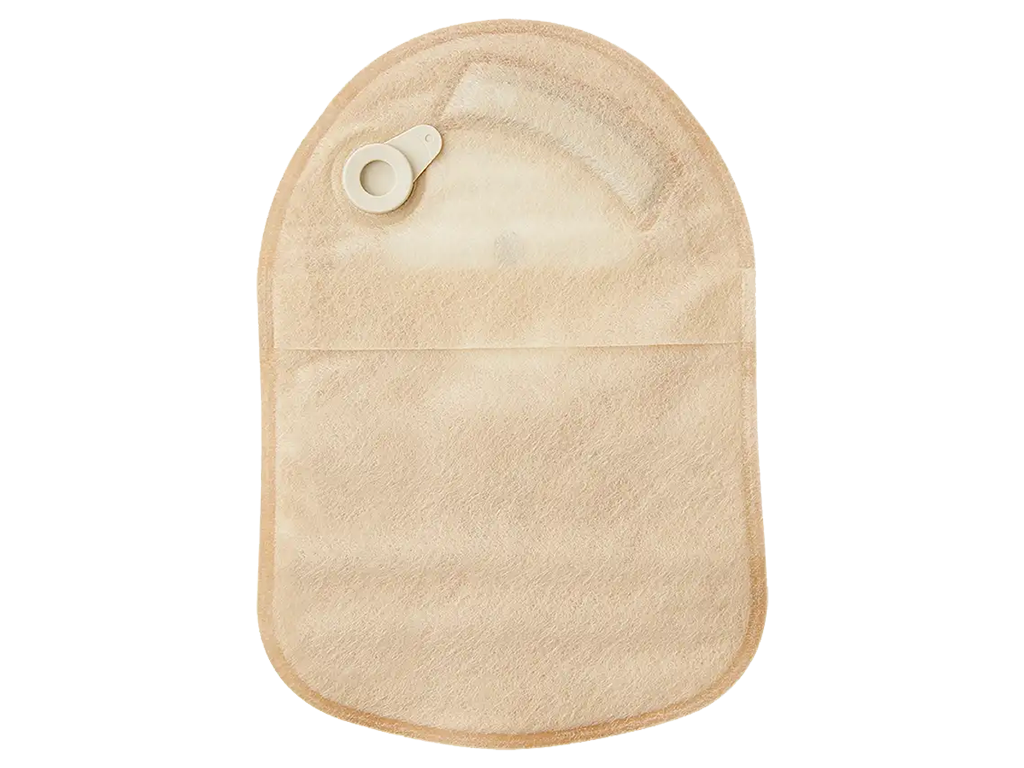 - Sistema de 2 peças: o saco de ostomia encaixa-se de forma segura a uma placa base (vendida separadamente), permitindo trocas rápidas e sem contacto com a pele.